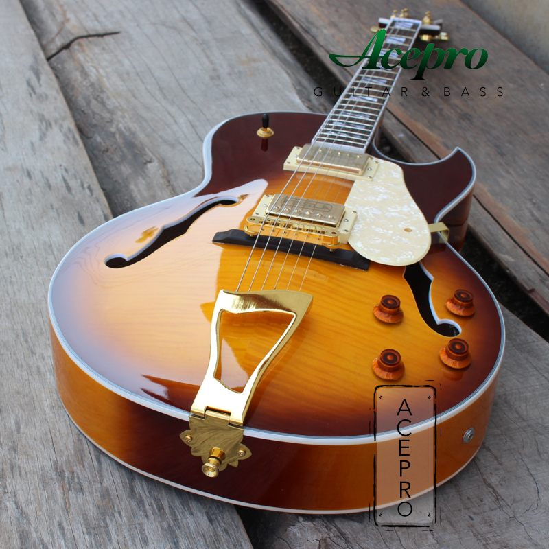 Acepro Guitars AH-707 Jazz Violin Full Hollow Fhole Jazz Electric Guitar Maple Wood JAZZ
