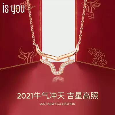ISYOU ox year series 18K gold necklace female birth year 2021 new cattle birthday gift