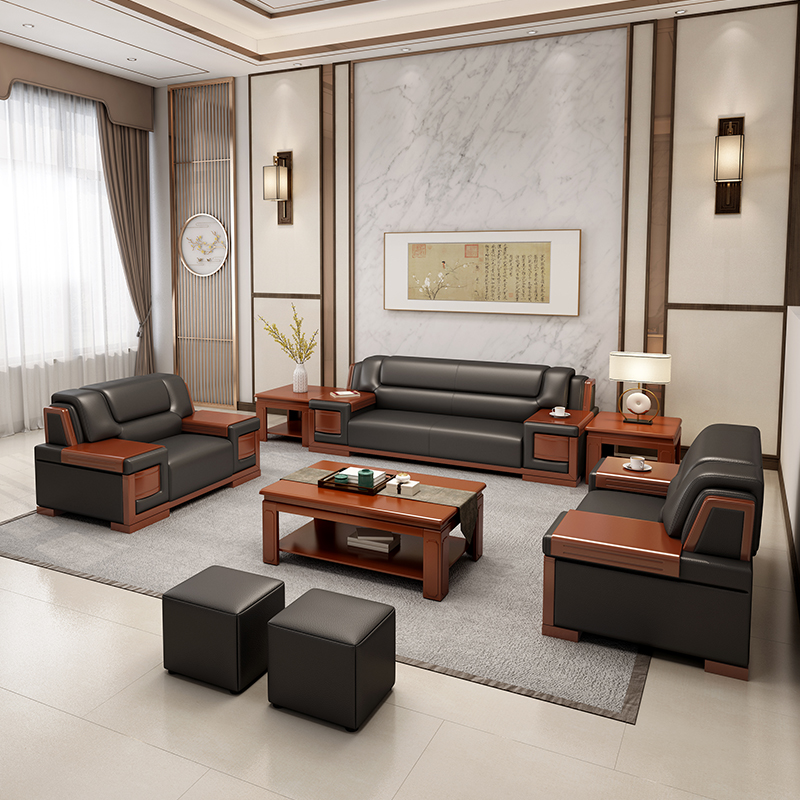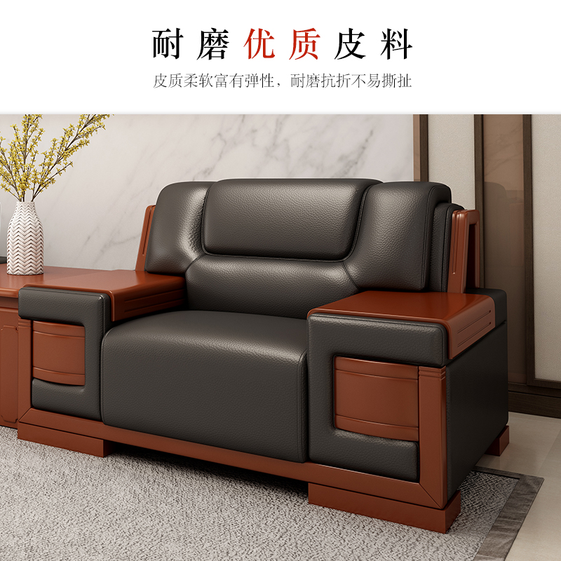 Office business reception leather sofa high-end modern Chinese luxury noble solid wood sponge leather art combination