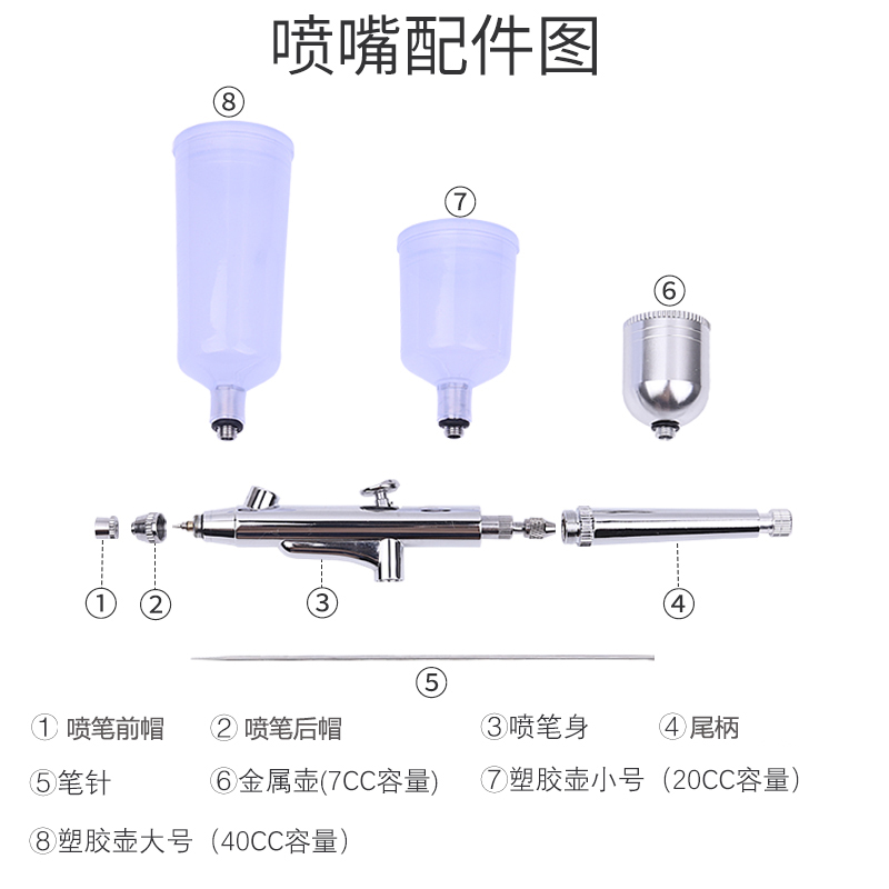 Spray pen front cap metal spray gun tail handle metal pot large plastic pot small plastic pot spray pen back cap pen needle oxygen meter set grain core replacement pot grain core spray gun