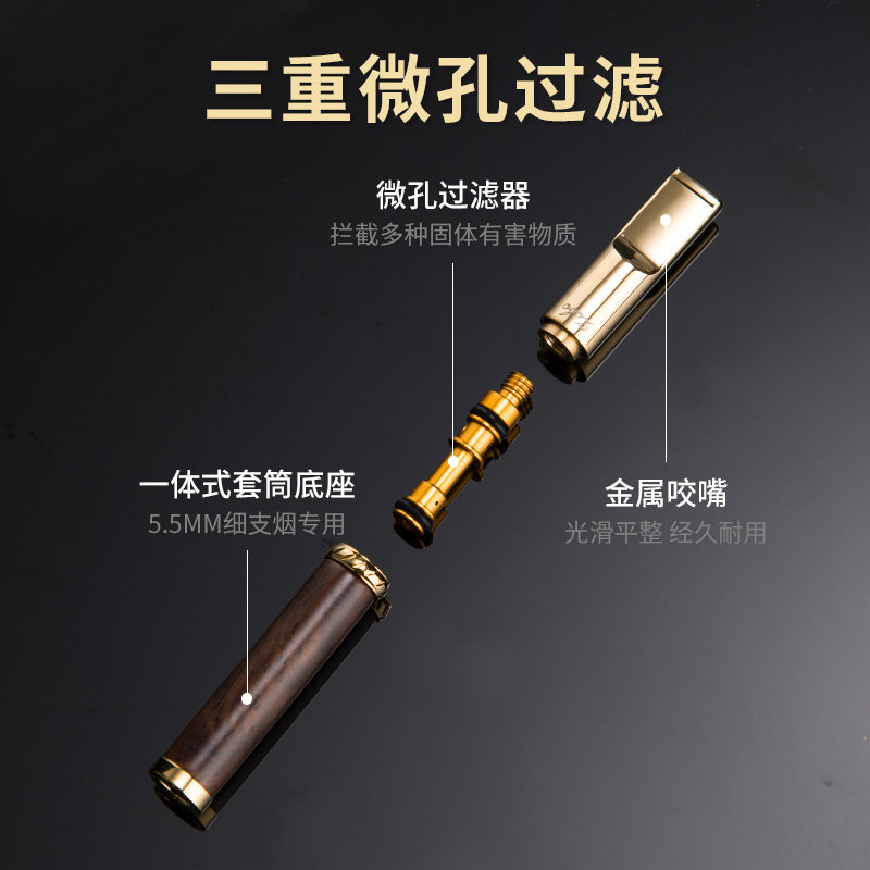 Zobo solid wood manual smoke filter nose circular type can clean triple fine cigarette special filter cigarette