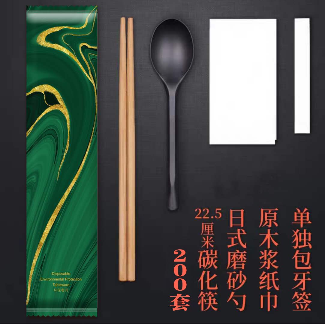 Disposable chopsticks three or four pieces custom takeaway package four in one tableware commercial high-end spoon forkknife set