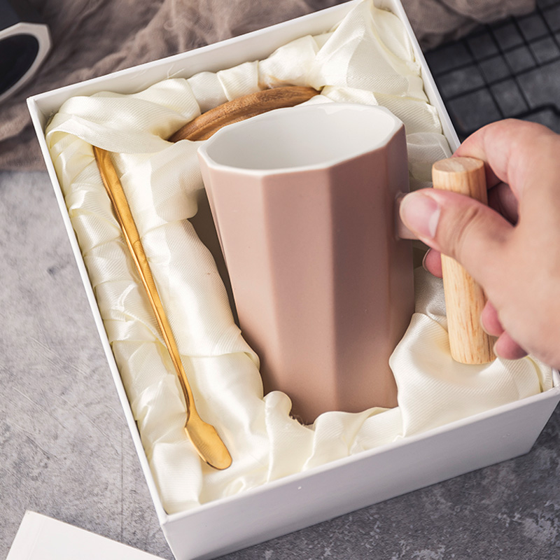 Mug with lid spoon cup creative personality trend gift box drink water cup Japanese coffee cup couple cup ceramic cup