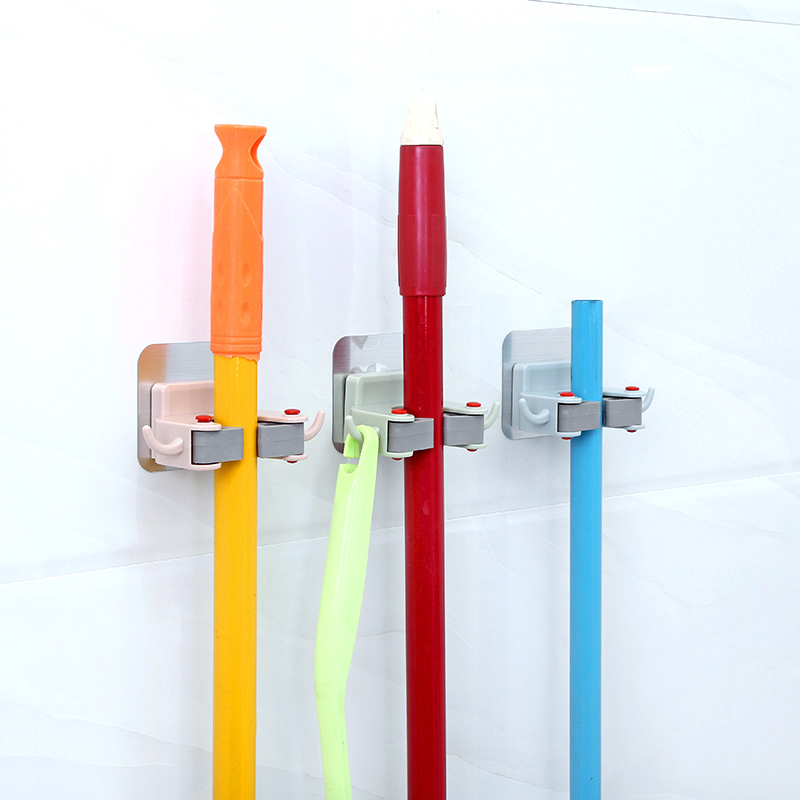 Mop Hook Free punch Powerful Adhesive Wall wall-mounted home No-mark containing mop clip bathroom hanging mop rack Divine Instrumental