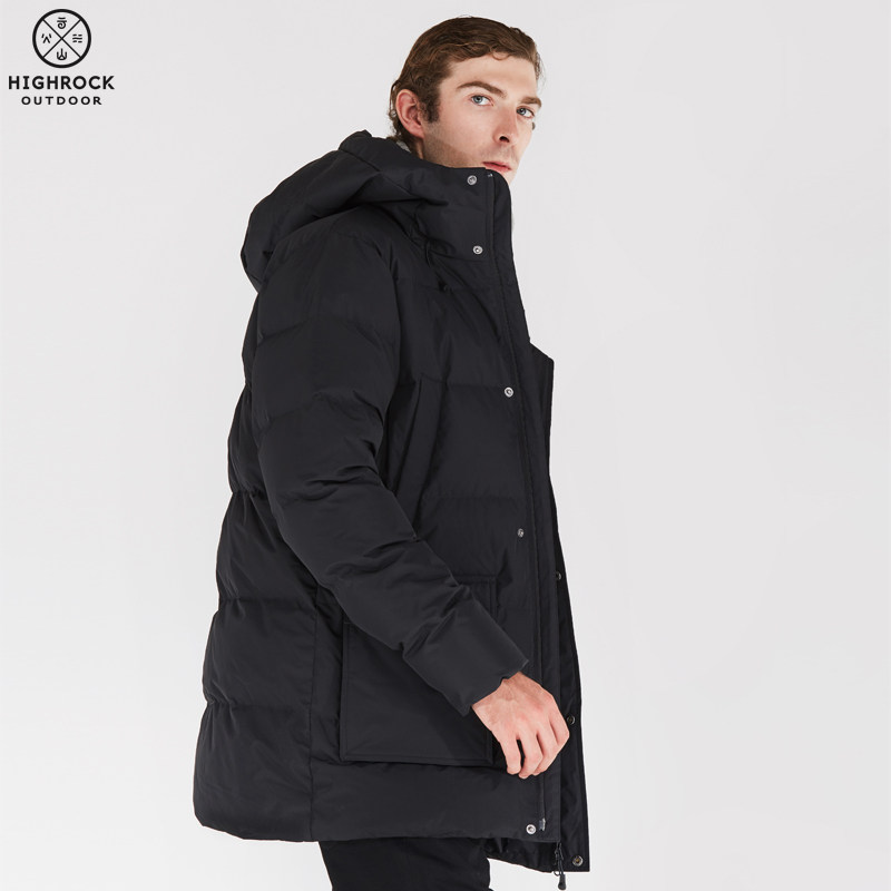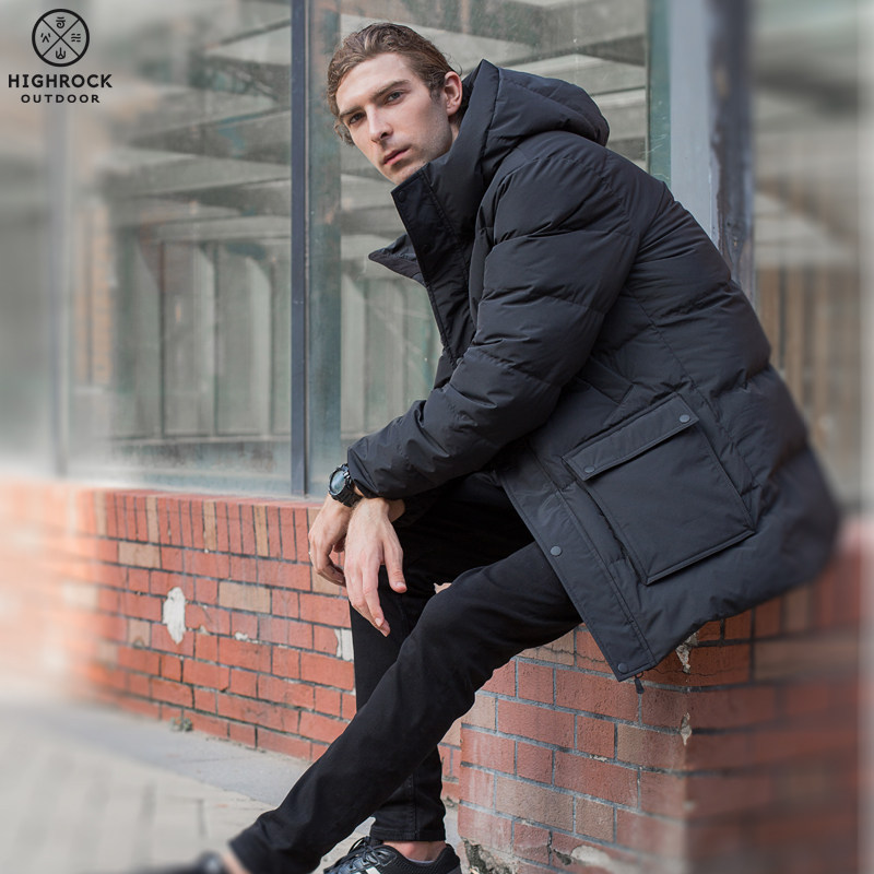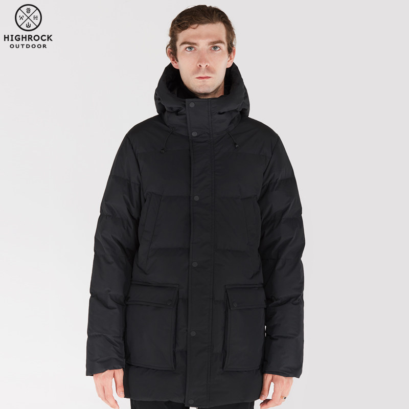 (Shun Feng shipping) Highrock sky stone outdoor windproof thickened down jacket for men's medium long version warm jacket
