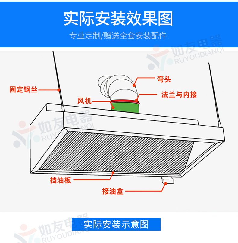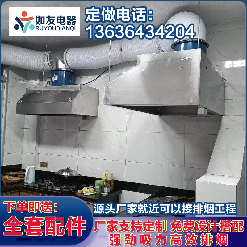 Commercial fume hood Stainless steel fume hood Hotel fume hood Hotel canteen smoking machine Kitchen fume hood installation