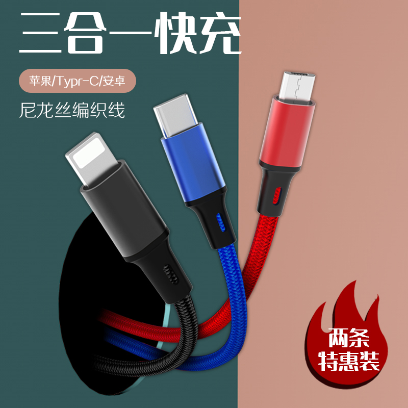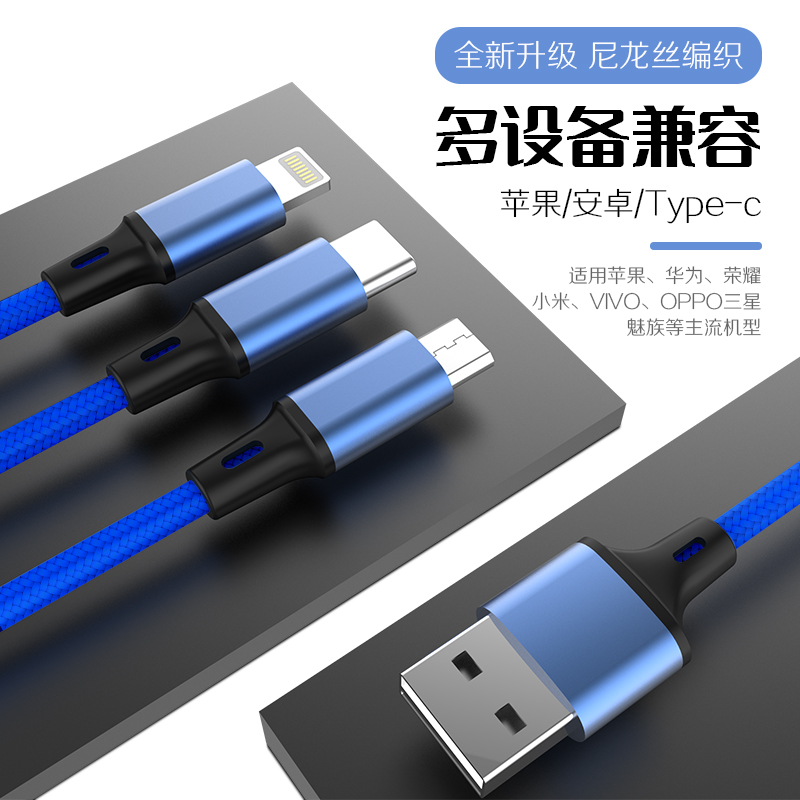 100 Guest data line Three-in-one quick-charge line one drag three onboard applicable Android Apple Huawei mobile phone type_c