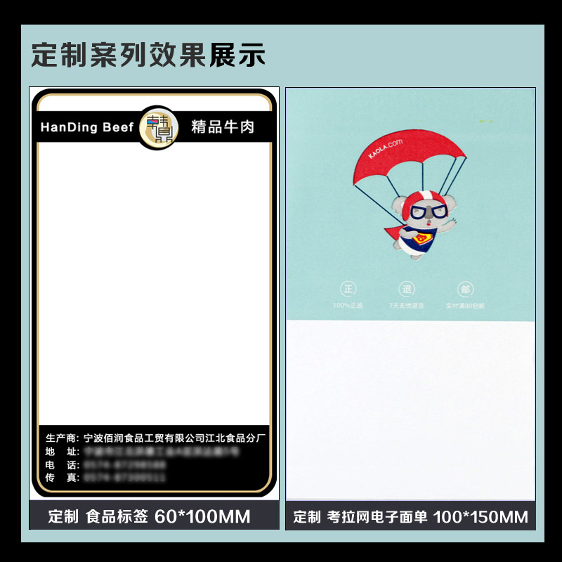 Label paper Custom custom on behalf of printing Coated paper Thermal paper Jewelry price sticker Cable certificate Two-dimensional code bar code waterproof clothing tag Asian silver color printing fast