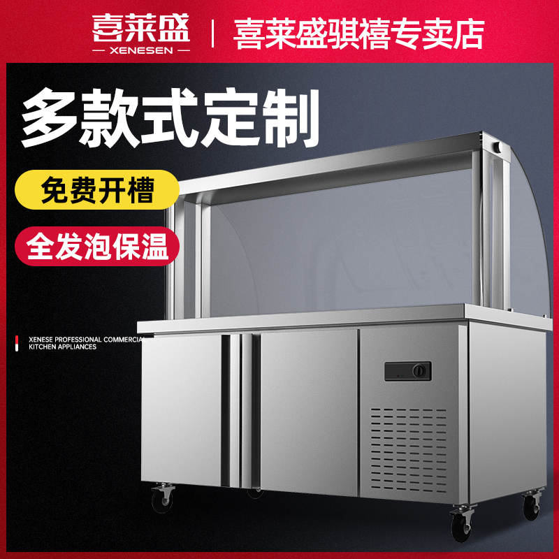 Happy Lein Salad Taiwanese Business With Pizza Refrigerated Operation Table Small Vegetable Fridge Fruit Bailing Refreshing Slotting Bench-Taobao