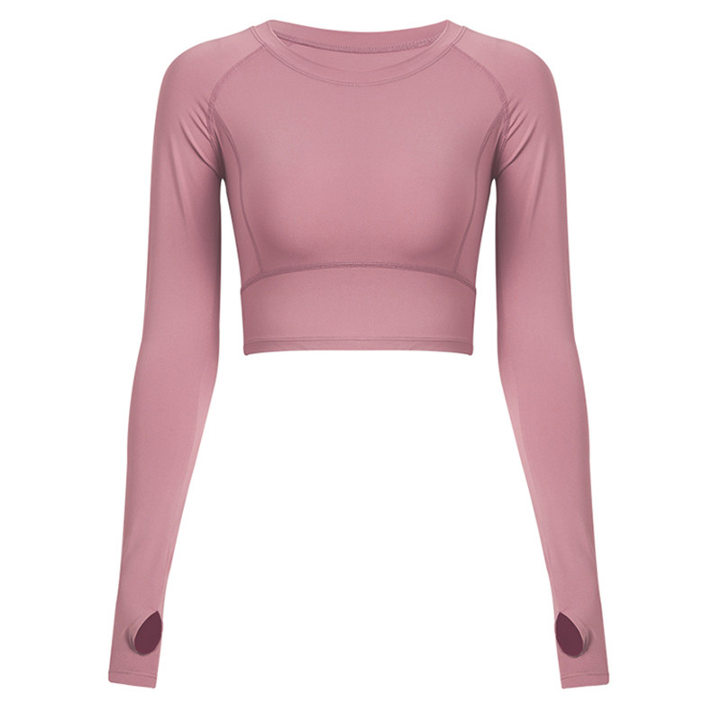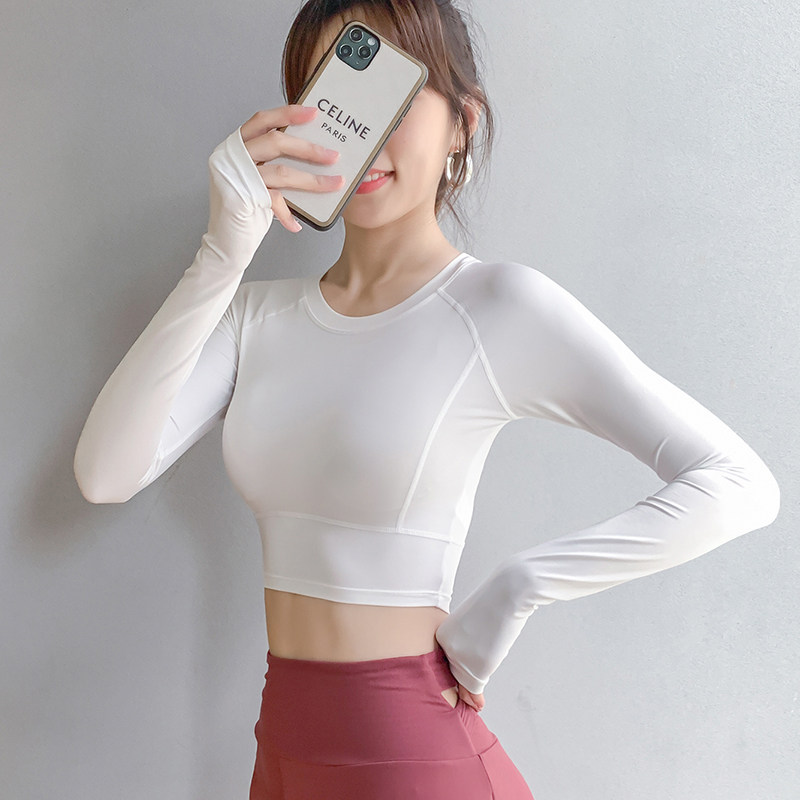 Spring and autumn sports jacket T-shirt women's tight short umbilical was thin sexy yoga suit net red running fitness long sleeve