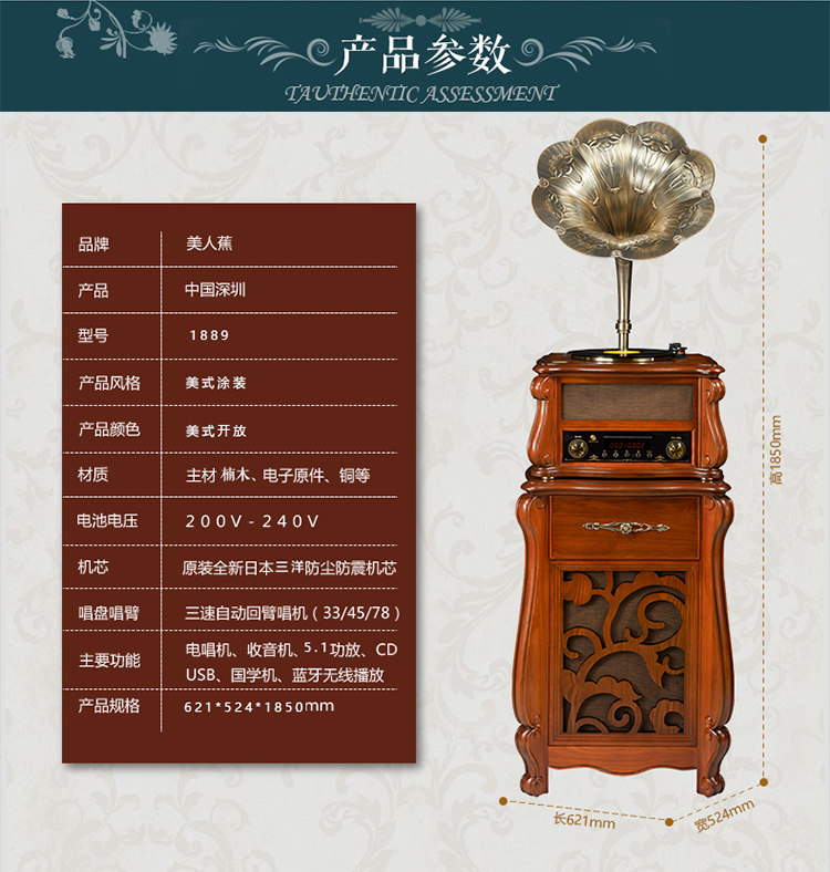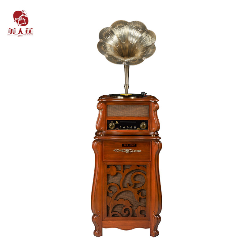 Beauty 1889 retro - granular black - film recorder large horn solid wood recorder household