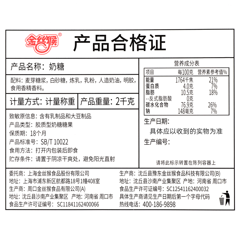Golden Monkey Milk Sugar Bulk 500g Nostalgia Nets Red Year Goods Candy Children Small Snacks Delight sugar Soft Sugar Batches Full Box-Taobao
