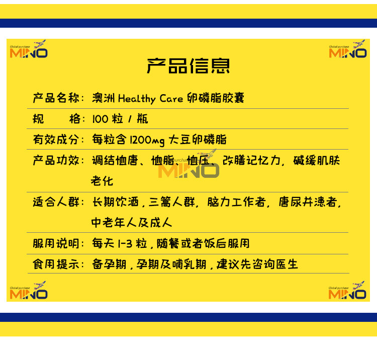 Australia Healthy Care HC Lecithin 1200mg Soy Lecithin Fish Oil Companion Middle-aged health care
