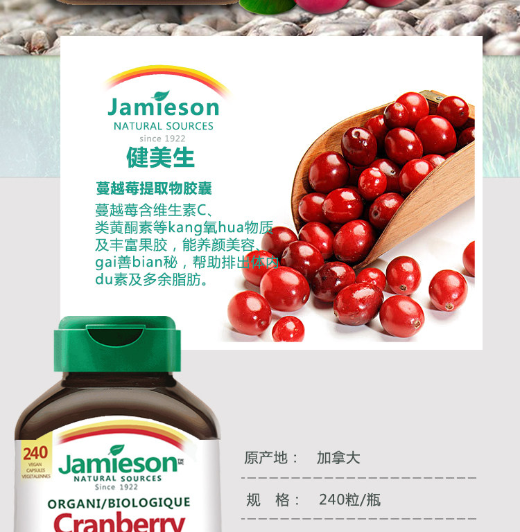 Canada Jamieson Jianmei Cranberry Capsule 240 240 Grains 500mg-Second Hair