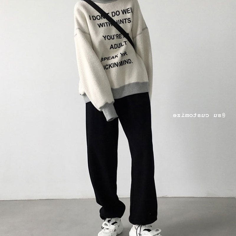 Broad-legged pants with high waist pituitary size mm suitable for hip thigh coarse display slim fit pants Korean version loose underfoot casual pants
