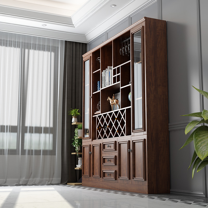 Solid Wood Bar Living Room Large Wine Cabinet Leaning Against Wall American Dining Cabinet Wall Side Cabinet Integrated New Chinese Guest Dining Room Locker