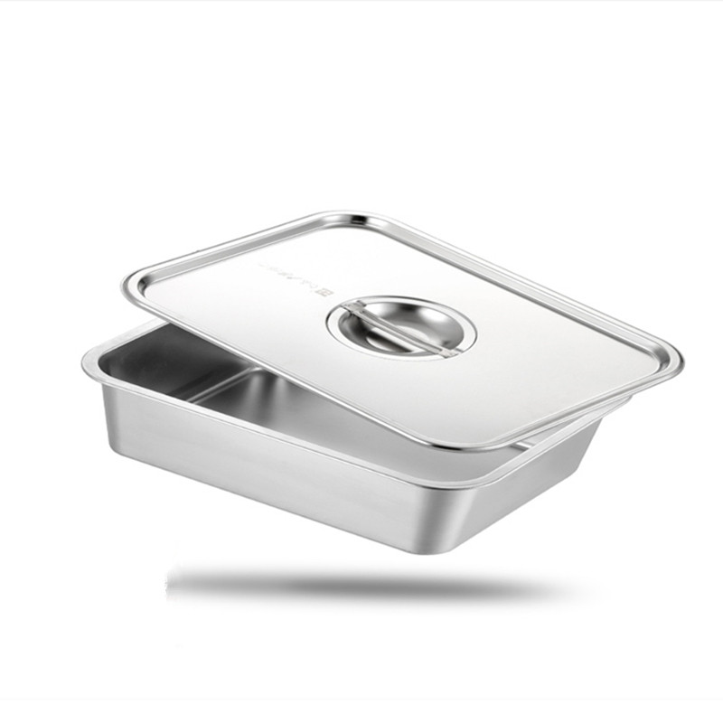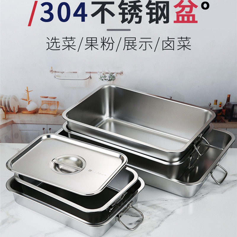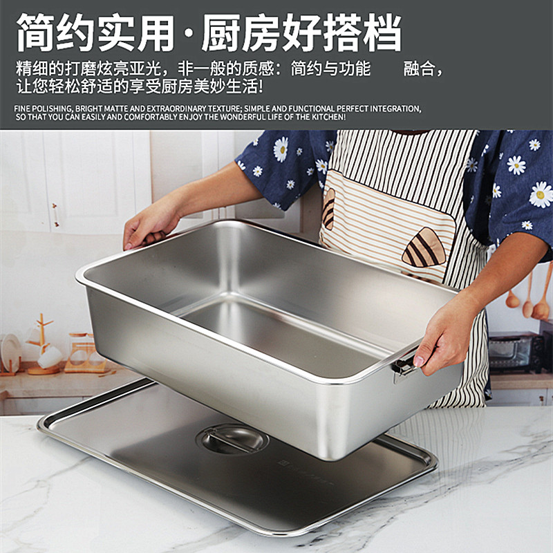 Food grade 304 stainless steel matching cover with handle square basin Dining Basin Basket Carrying deepen Thickened Fried large basin