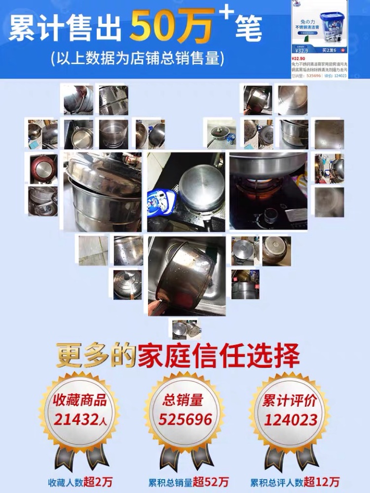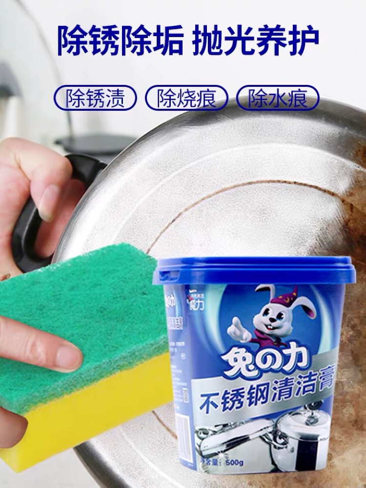 Rabbit force stainless steel cleaning cream household kitchen oily washing pot bottom black scale remove rust cleaning agent strong decontamination
