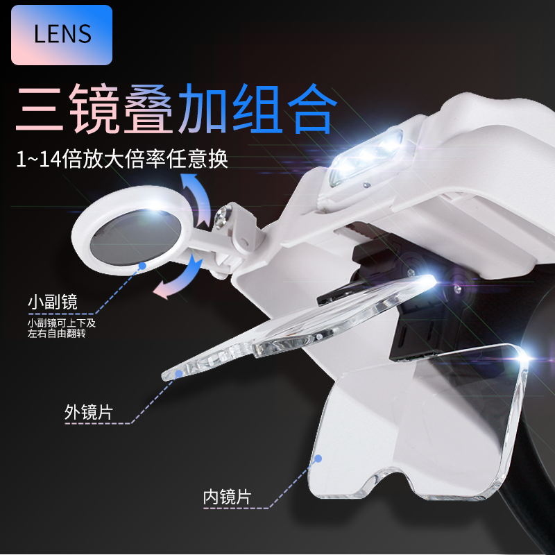 Baishitong head-mounted magnifying glass for the elderly high-definition repair watch circuit board repair with LED lamp charging high-power 1000 glasses 60 micro-carving reading to see mobile phone identification of cultural games and antiques