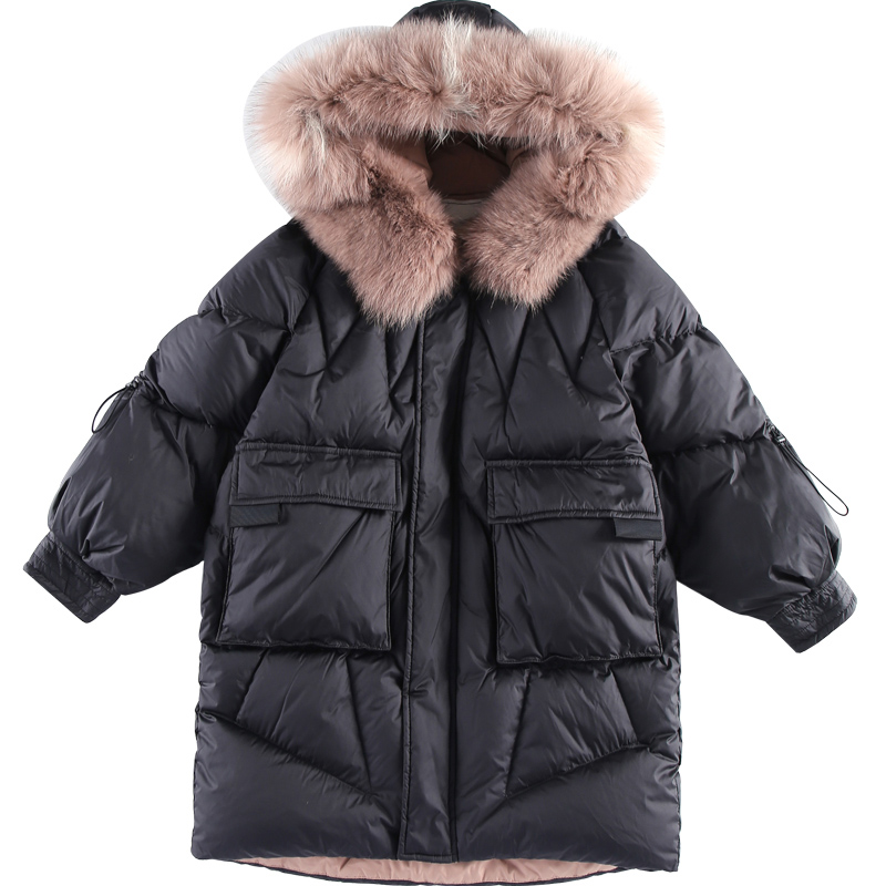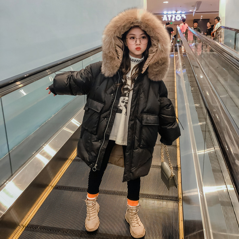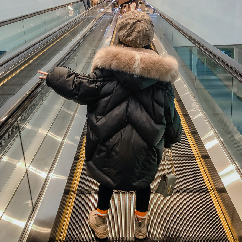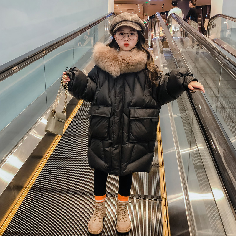 Korean girl down jacket long 2021 new winter style Foreign style Korean version of net Red big children children thick coat