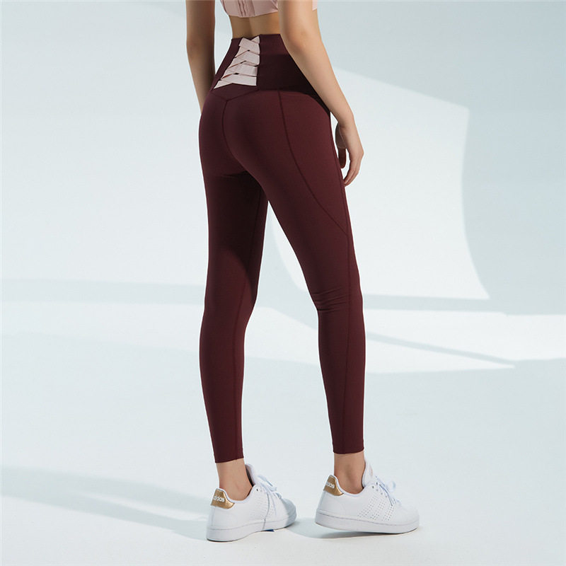 Fitness pants widened high waist stretch skin-friendly body yoga pants back cross design solid color wild sweatpants women