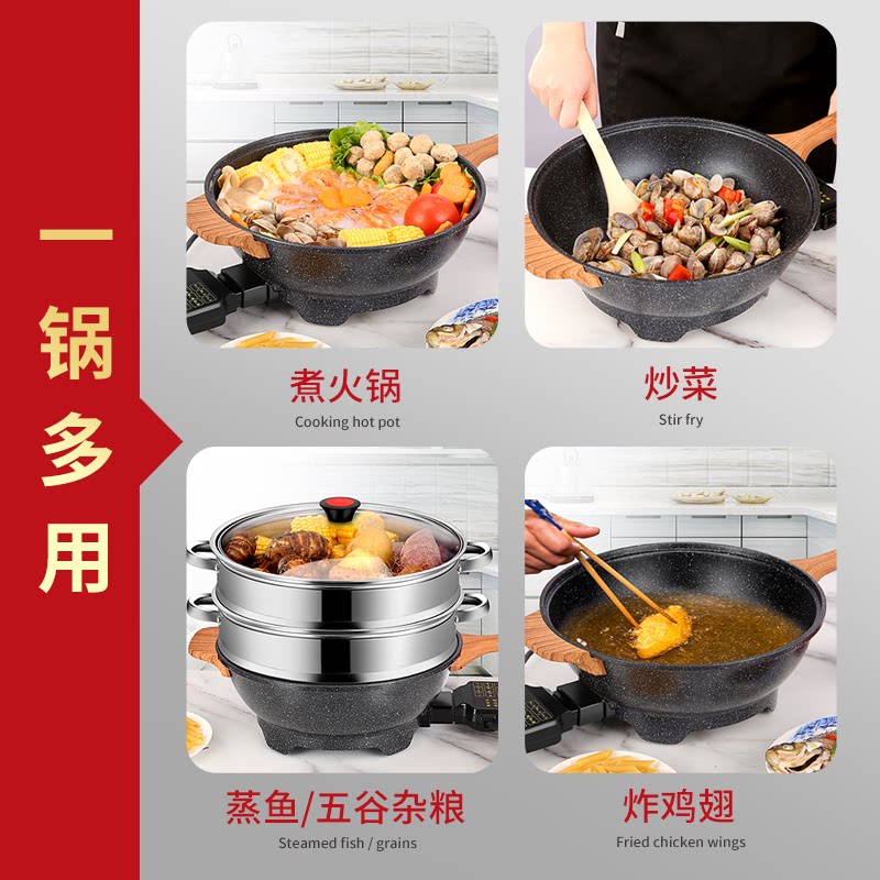 Electric frying pan multi-functional electric hot pot Maifan stone electric heating pot non-stick electric frying pan cooking all-in-one electric pot