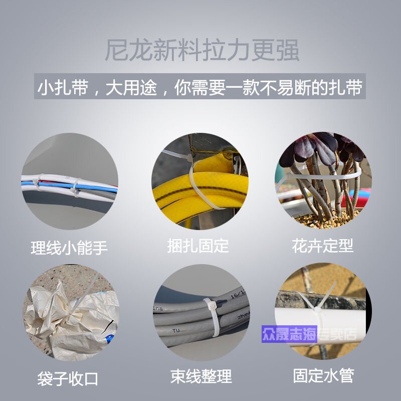 Self-locked nylon tie 4 * 200mm prick line with 500 fixed plastic strapping with buckle strong white