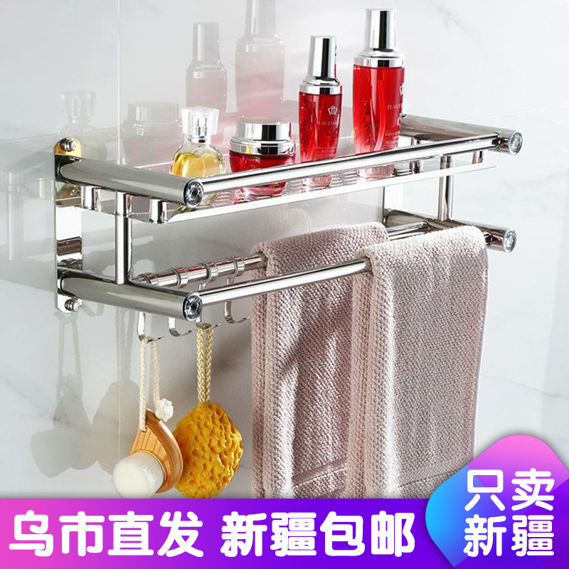 Xinjiang stainless steel towel rack free punch powder room rack toilet bathroom wall hanging storage towel rack