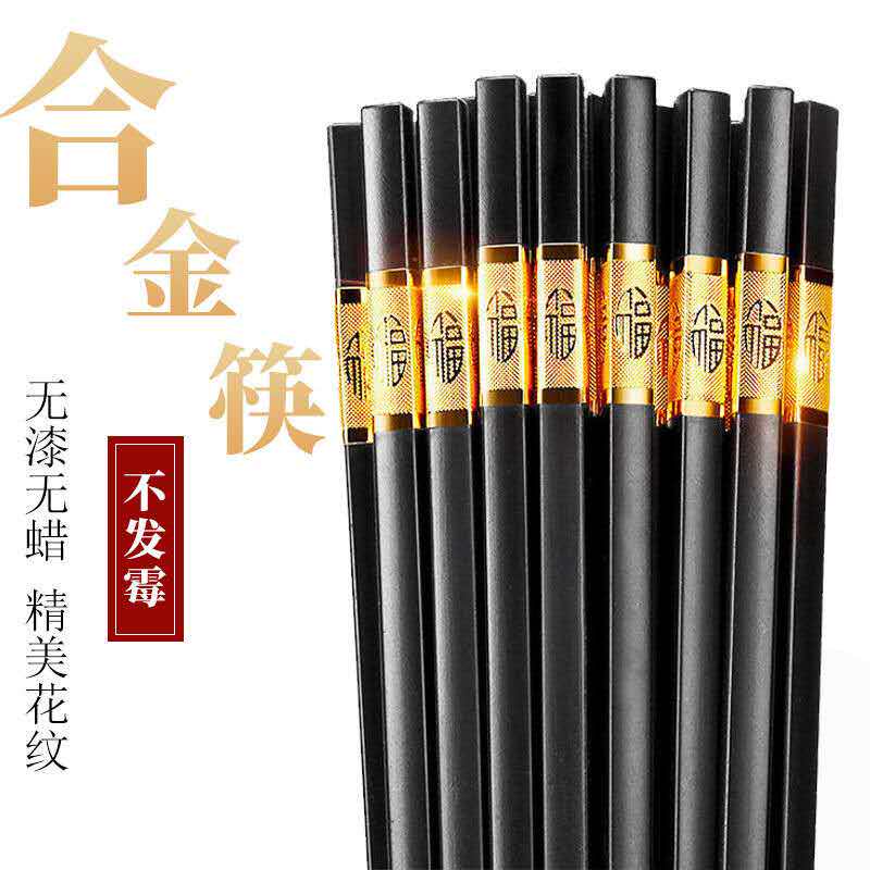 Chopsticks Home Alloy Chopsticks Anti-Mold for Family Chopsticks Hotel Chopsticks A Pack of 10 Double Commercial Quick