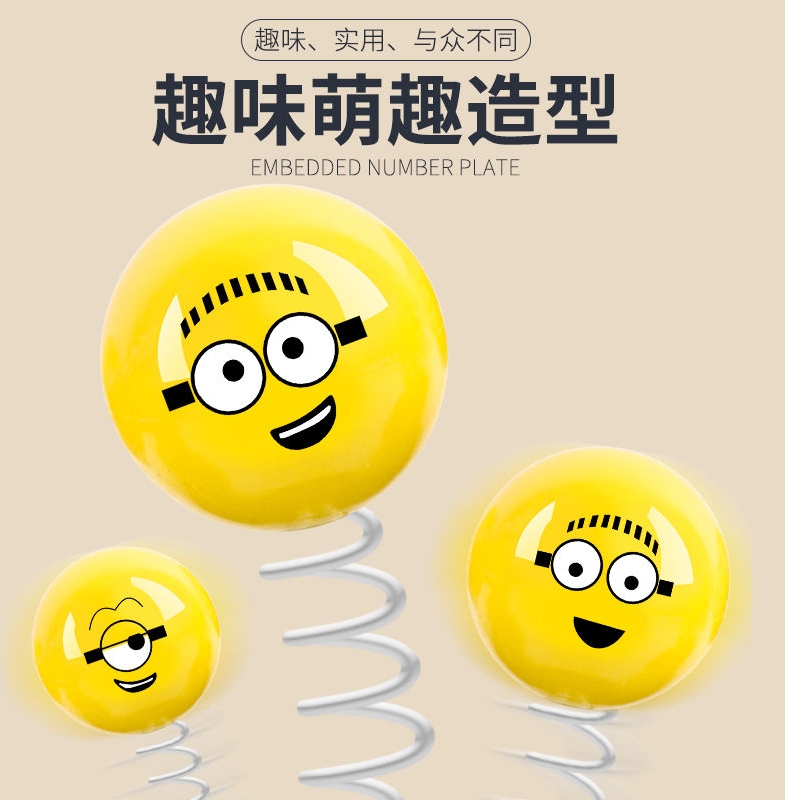 Smiley face little yellow face car parking plate creative car number plate cute shaking head doll car parking plate