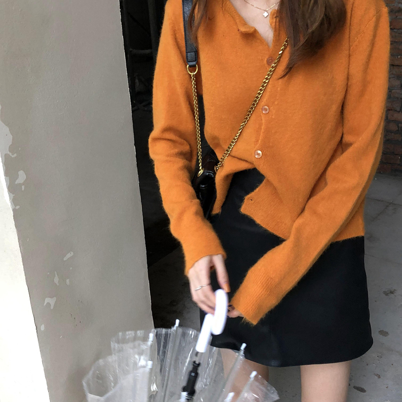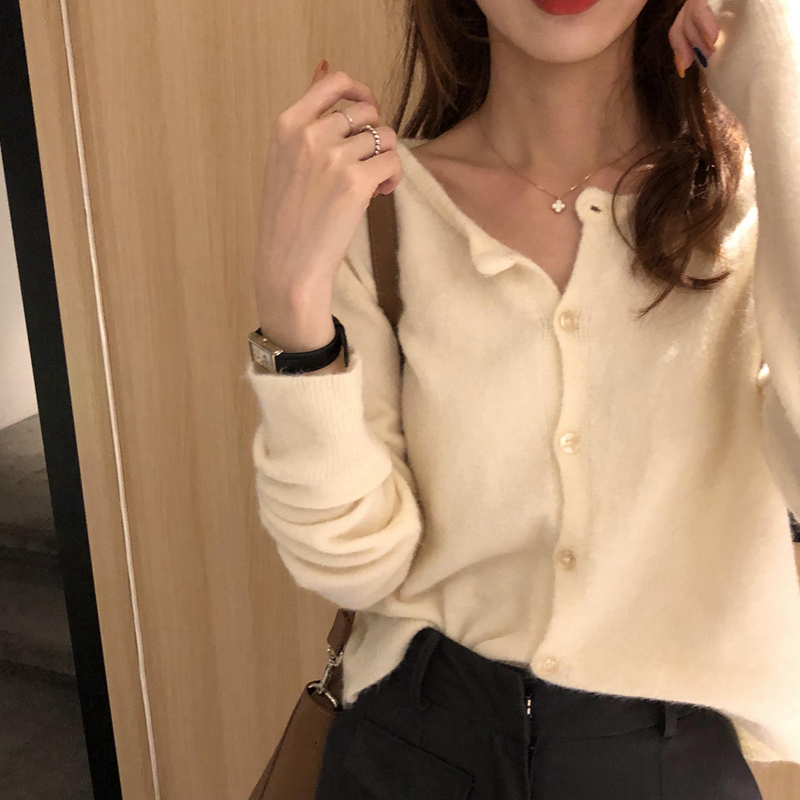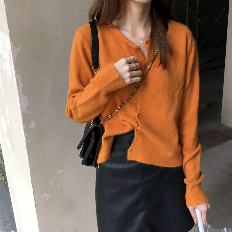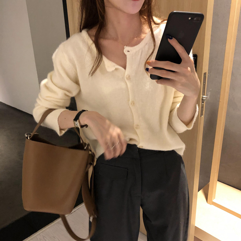 Knitted cardigan top short outer wear single-breasted long-sleeved thin loose outer wear lazy sweater coat women autumn and winter