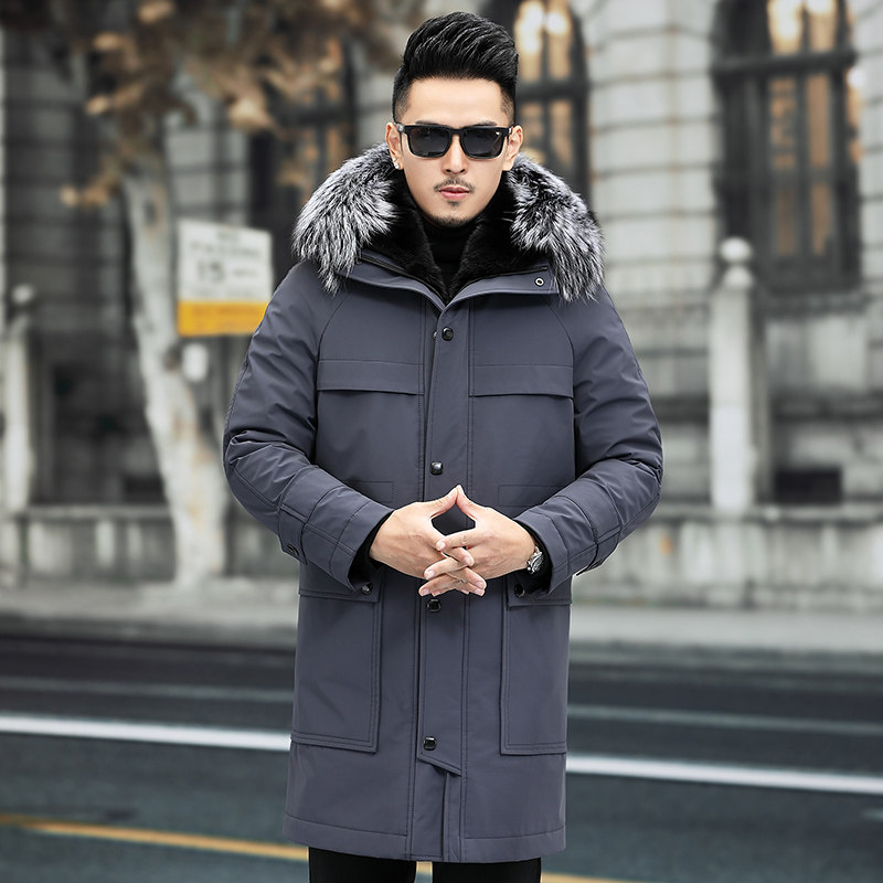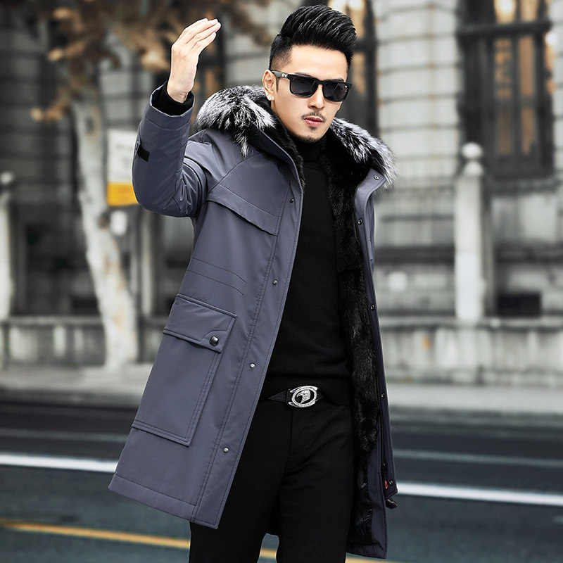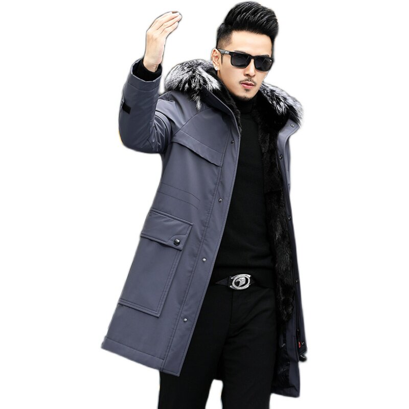 Pieker men's whole mink fur one mink liner mid-length silver fox fur collar fur coat Nickelodeon coat