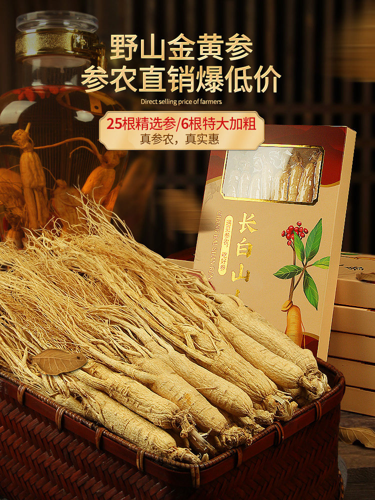 Wild Mountain ginseng ginseng 6-8 years old White Mountain ginseng 25 packs Northeast specialty Forest sun ginseng gift gift