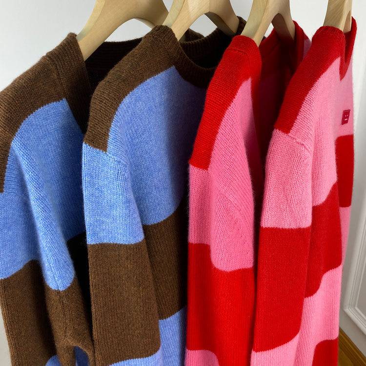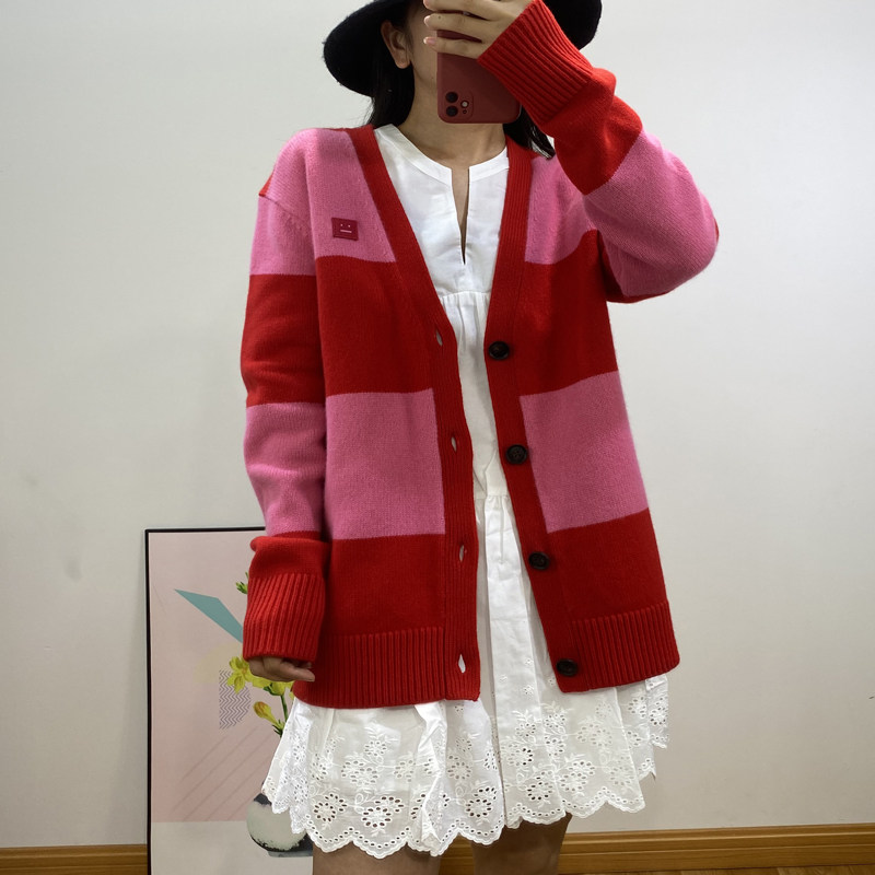 Smiley Face Sweater Autumn Winter New Thickened Collage Striped Long Sleeve Loose Wool Knit Cardiovert Knitwear