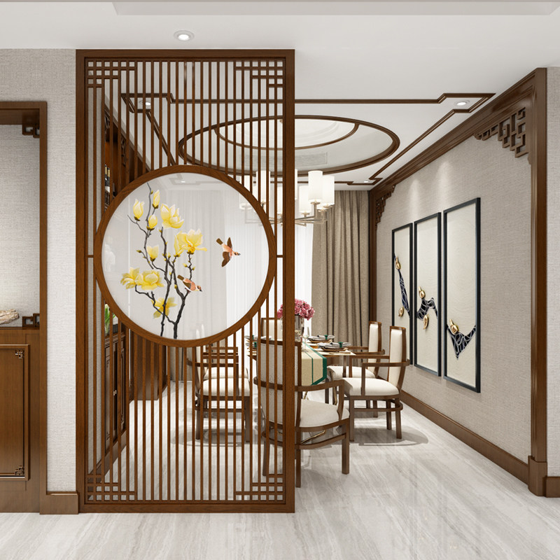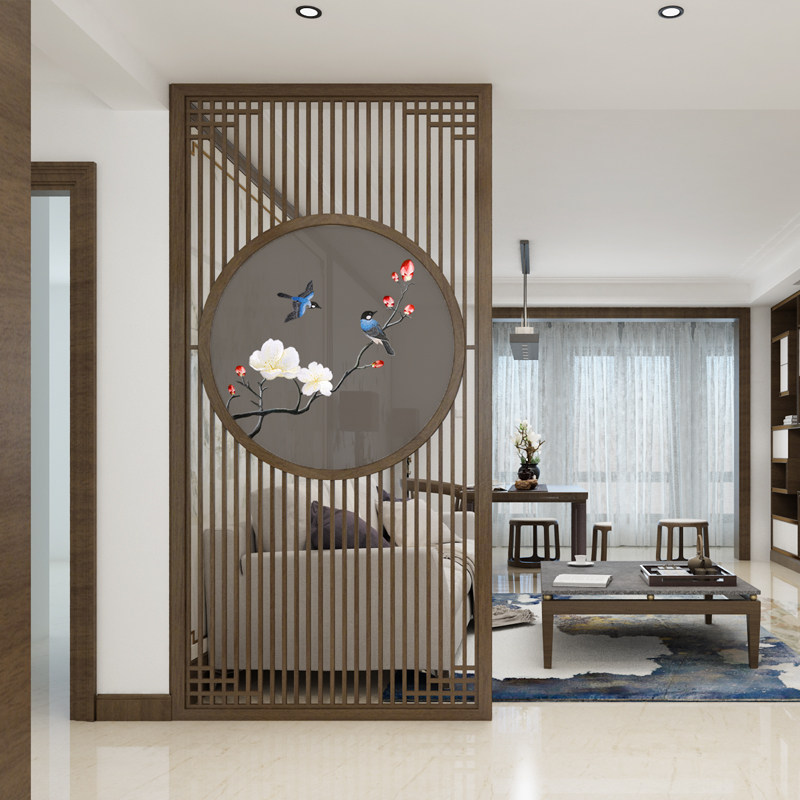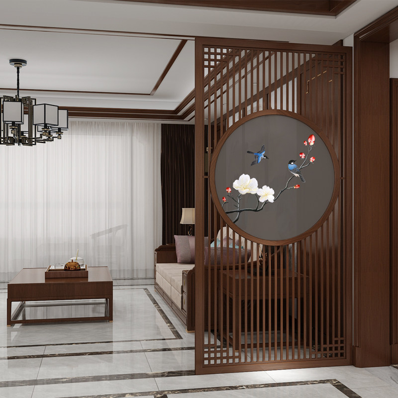 New Chinese solid wood screen grille cut wooden living room embroidery hotel masonry double side embroidery office