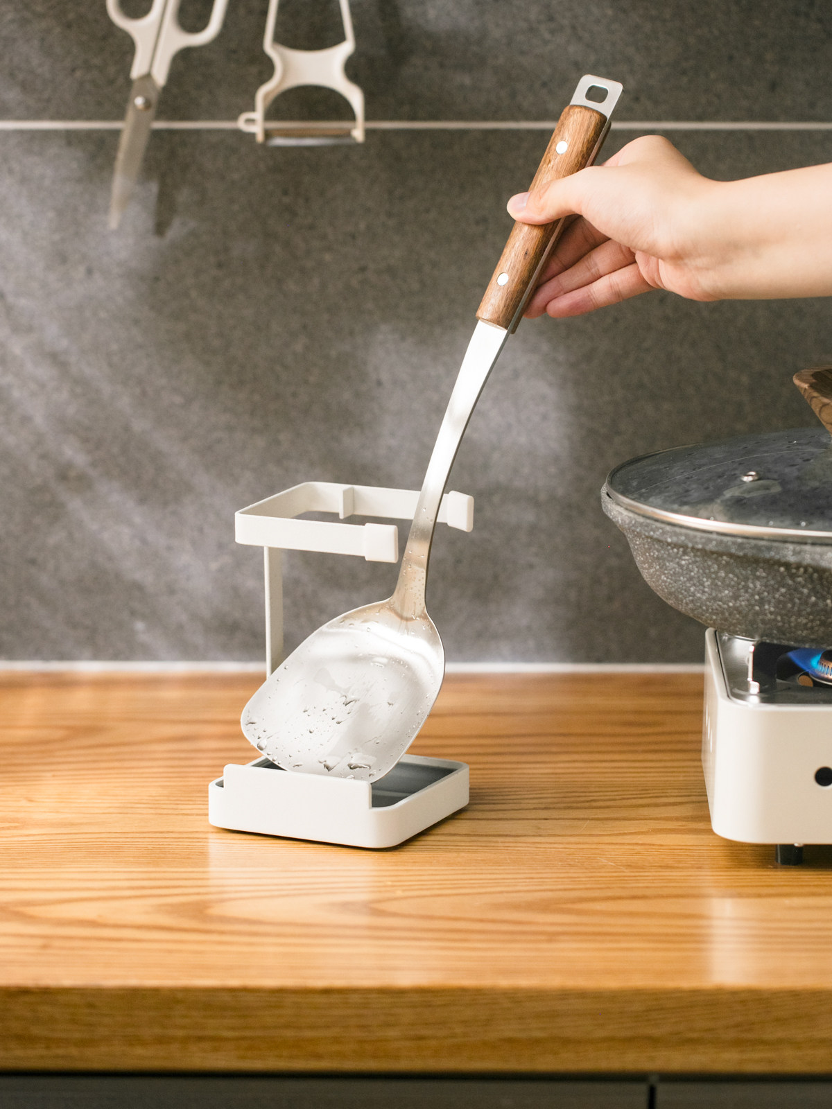 Pot lid rack sitting tabletop vertical magnifying pot lid spatula shelf with water multi-functional kitchen put spoon storage