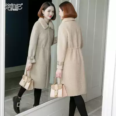 Cashmere coat women's long version 2021 autumn and winter new grain cashmere Lamb hair mink collar fur one coat