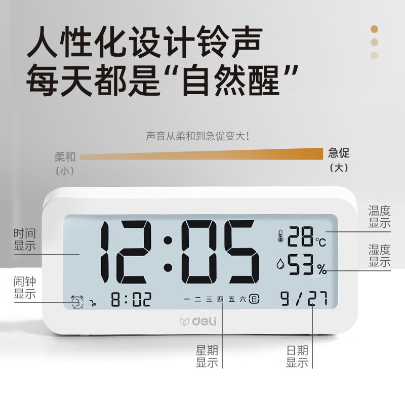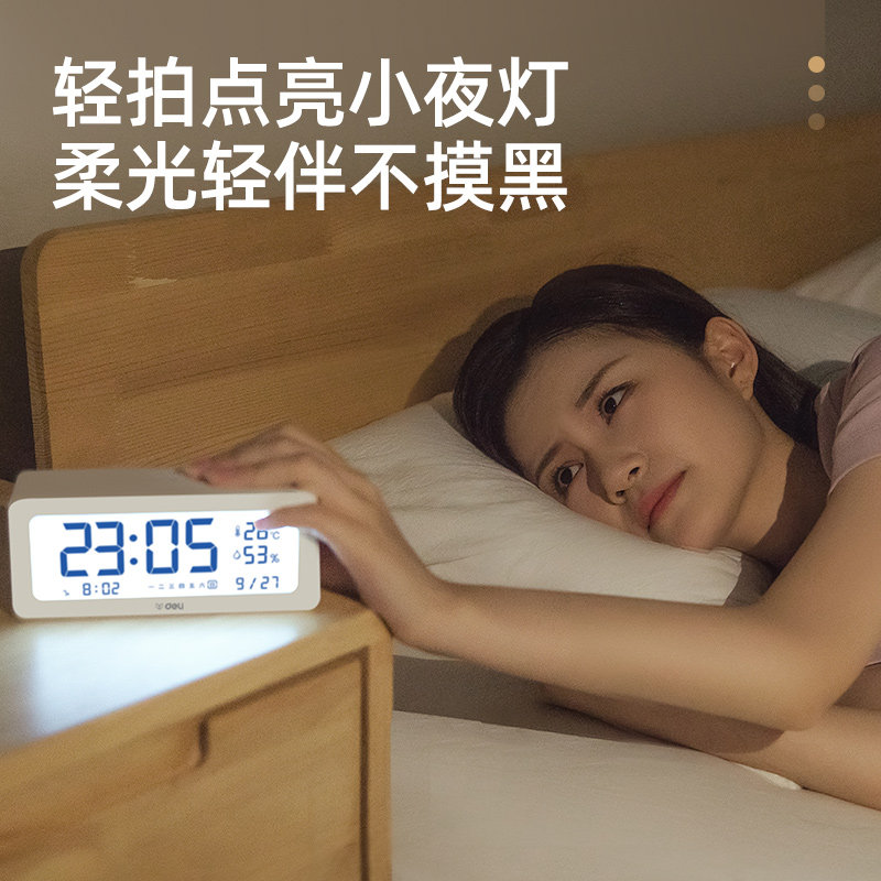 Deli alarm clock students with get up artifact children boys girls temperature and humidity electronic clock multi-function timer