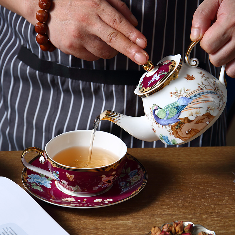 Chinese bone porcelain primary-secondary pot suit pot cup plate National tide ceramic flower tea tea tea set for gift giving gift