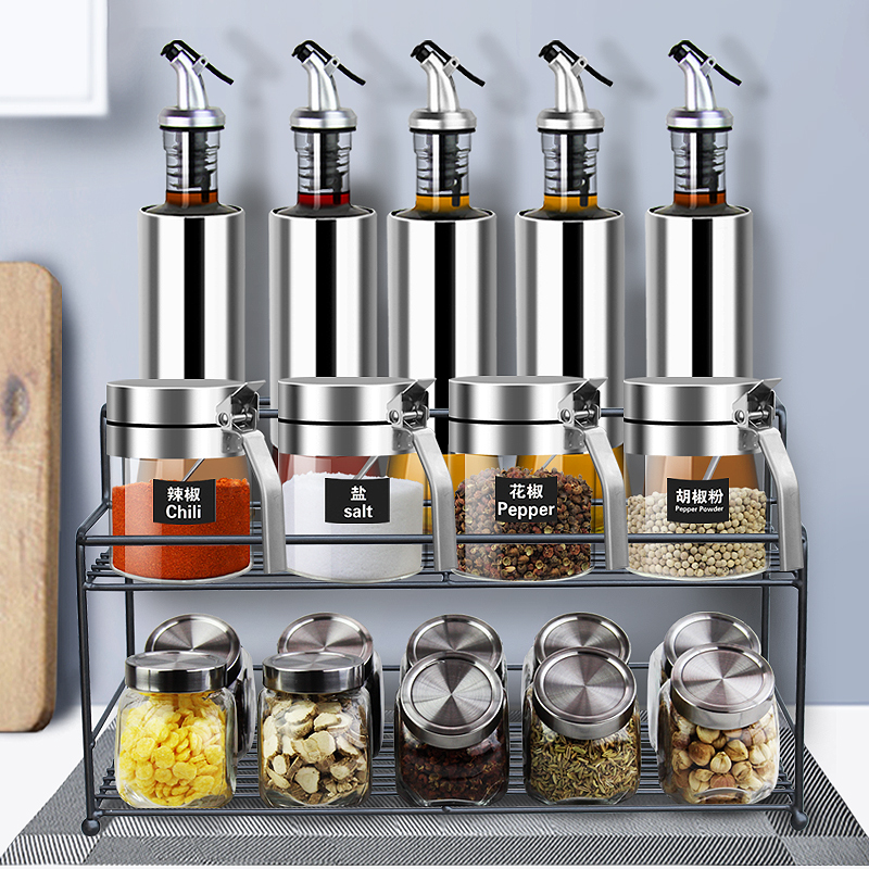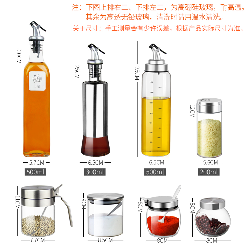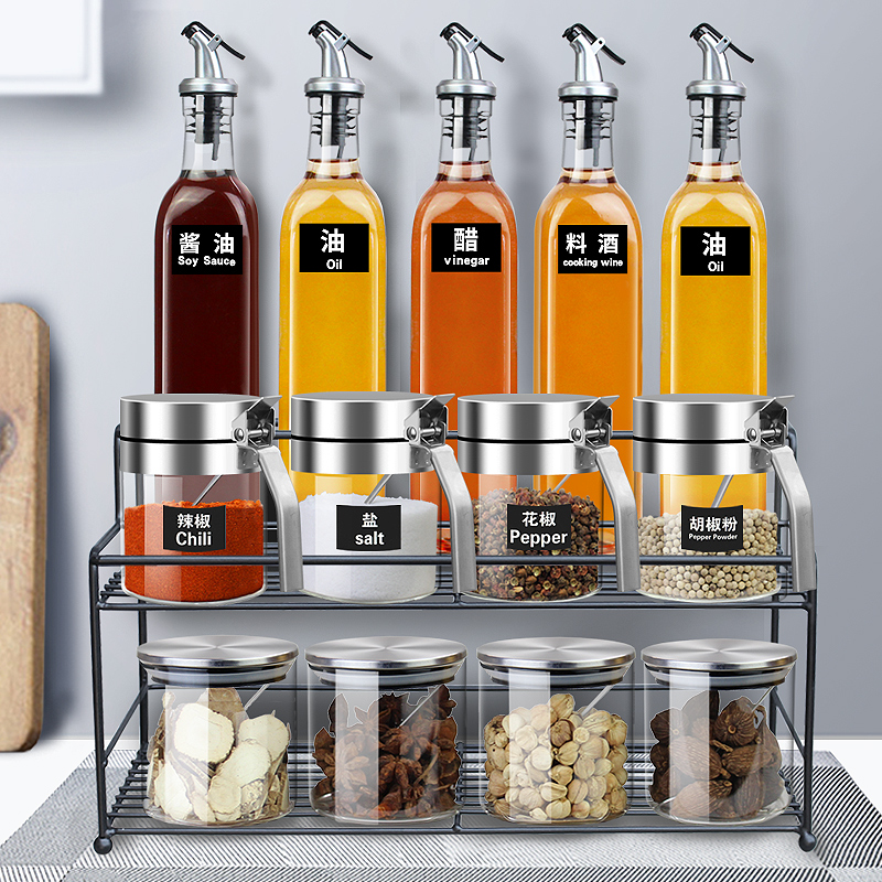 Fengshou glass seasoning bottle can oil bottle Household set with shelf Chicken essence salt pepper pepper jar seasoning box