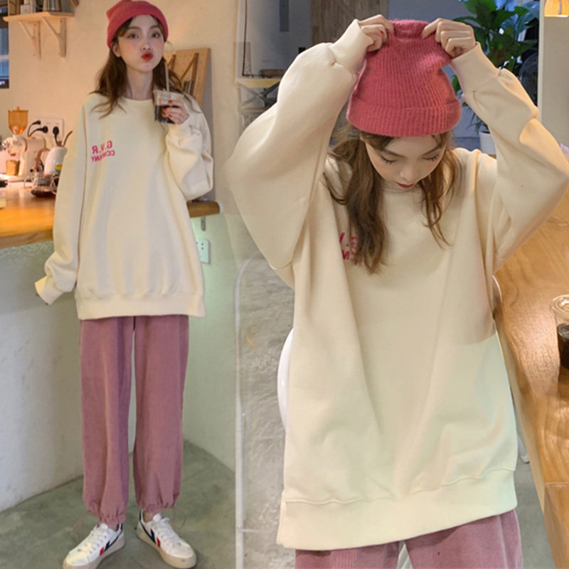 Pink pants (thin section)Pink pants (plus velvet section)Apricot sweater (thin section)Apricot color (plus velvet section)Apricot sweater Pink pants (thin section) plus velvet apricot sweater Pink pantsPink pants apricot color