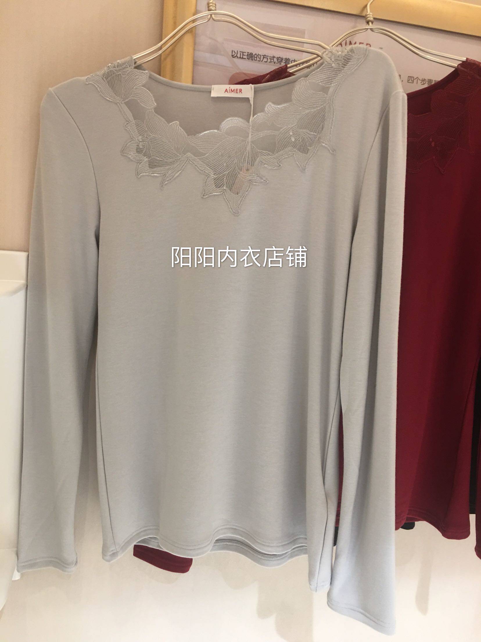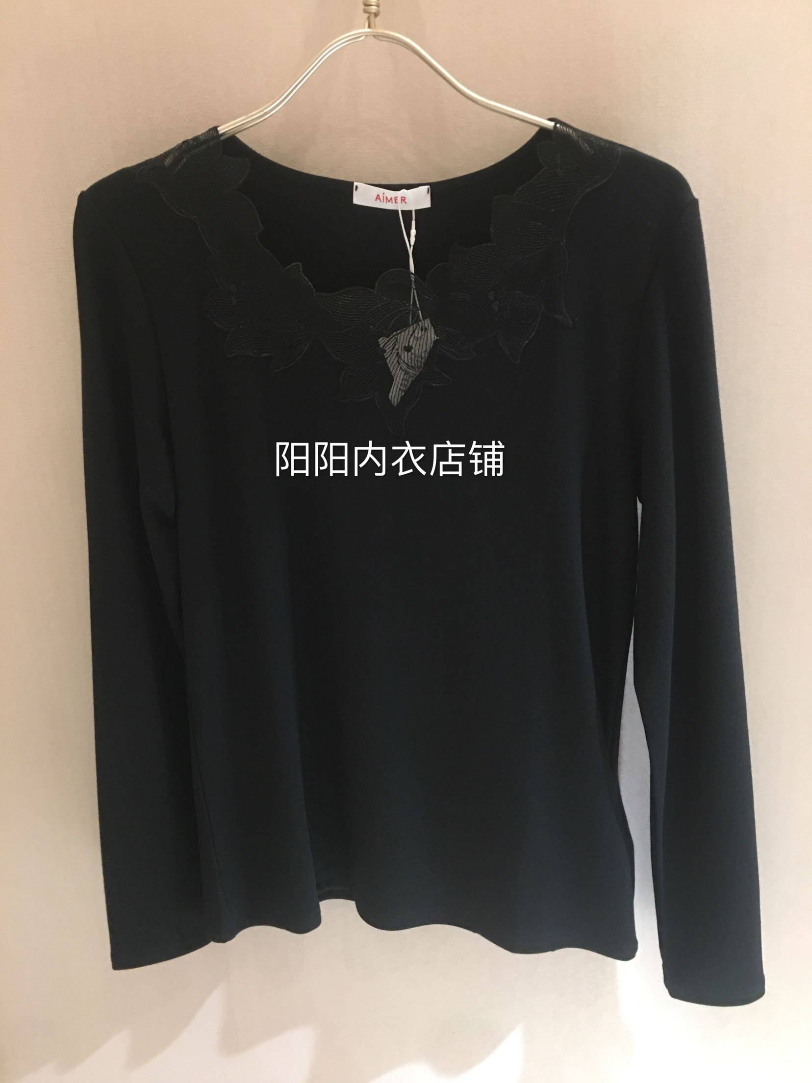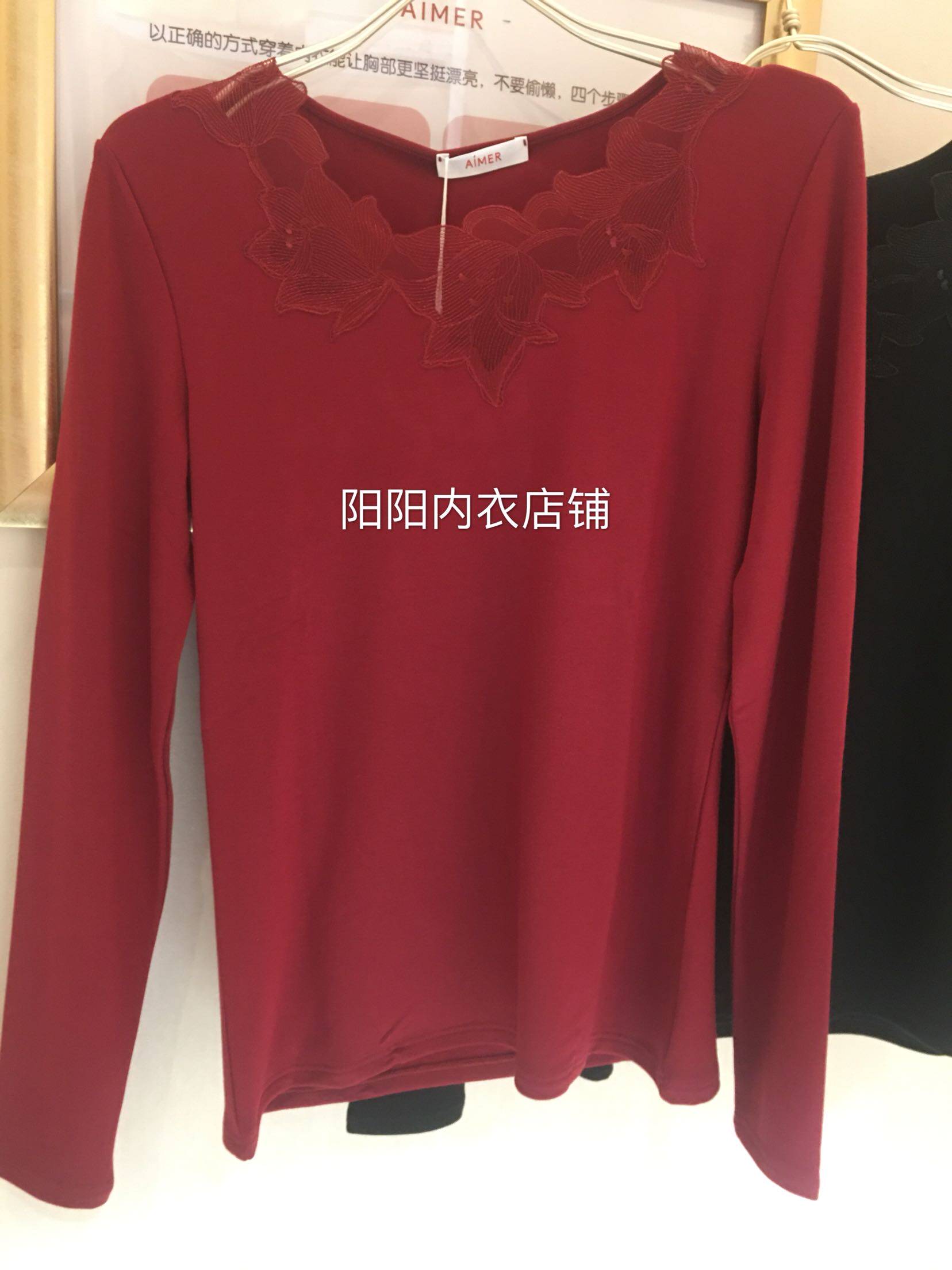 Aimer counter women's autumn and winter single-layer medium-thick fine velvet round neck autumn clothes warm top AM725051