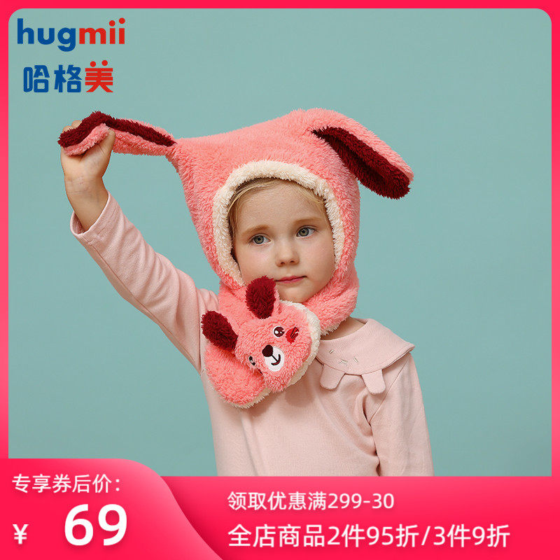 hugmii children's hat Autumn and winter boy and girl ear protection hat bib one cute super cute baby ear cotton hat