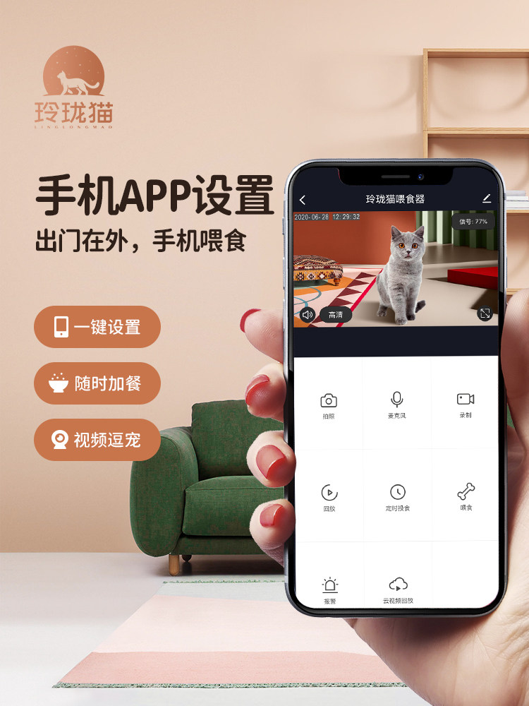 Linglong cat intelligent pet automatic feeder cat timing quantitative feeding machine dog food cat food automatic cat food basin