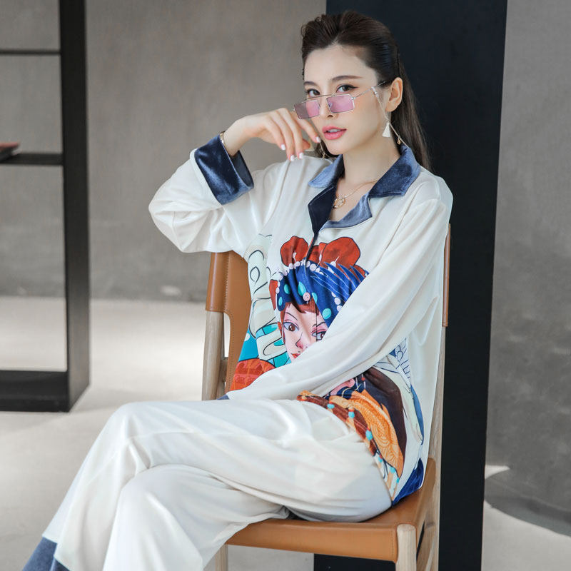 2022 New Pajamas woman spring and autumn long sleeve gold velvet China Farm tide can wear autumn and winter home suit