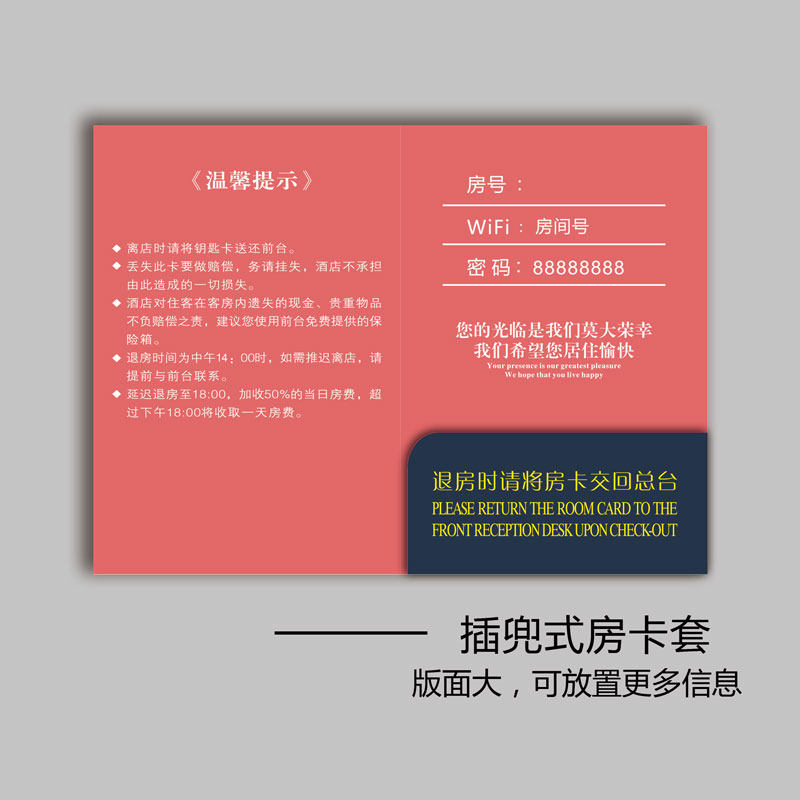 Room card set custom hotel special hotel hotel B & B member access card bag envelope custom printed logo