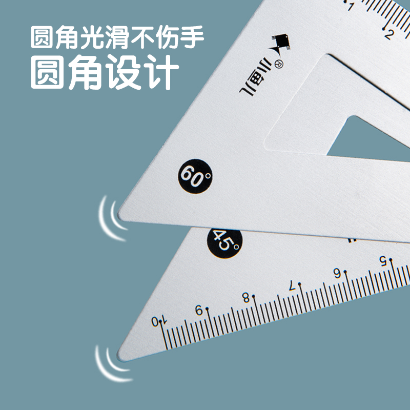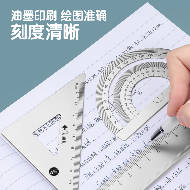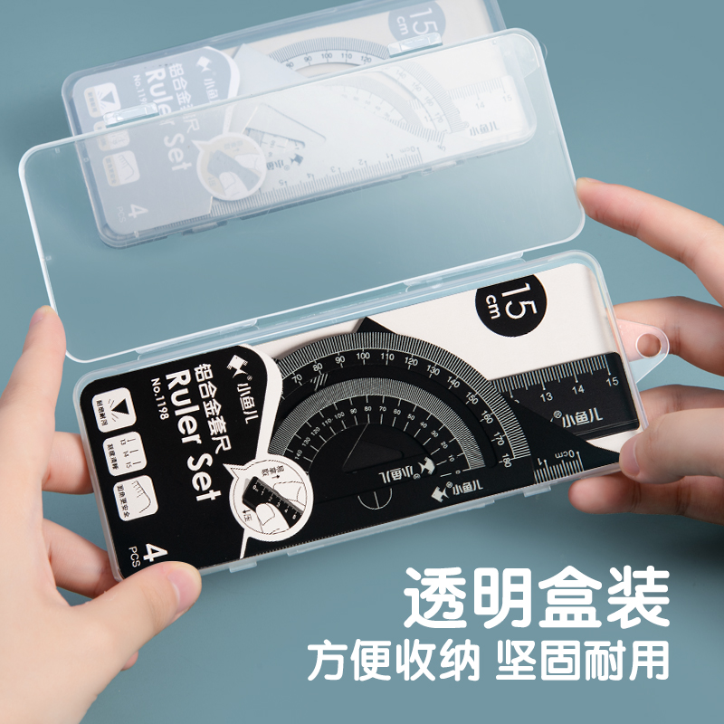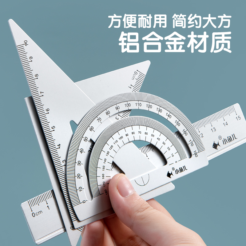 Sleeve size aluminum alloy ruler suit small fisher metal four sets ruler brief elementary school students with 15cm ruler triangular ruler Protractor children multifunction stationery learning supplies Drawing Triangle board