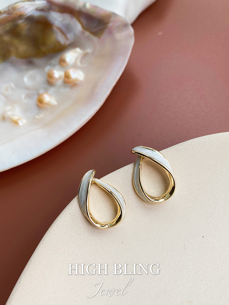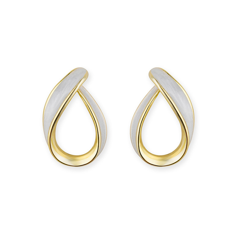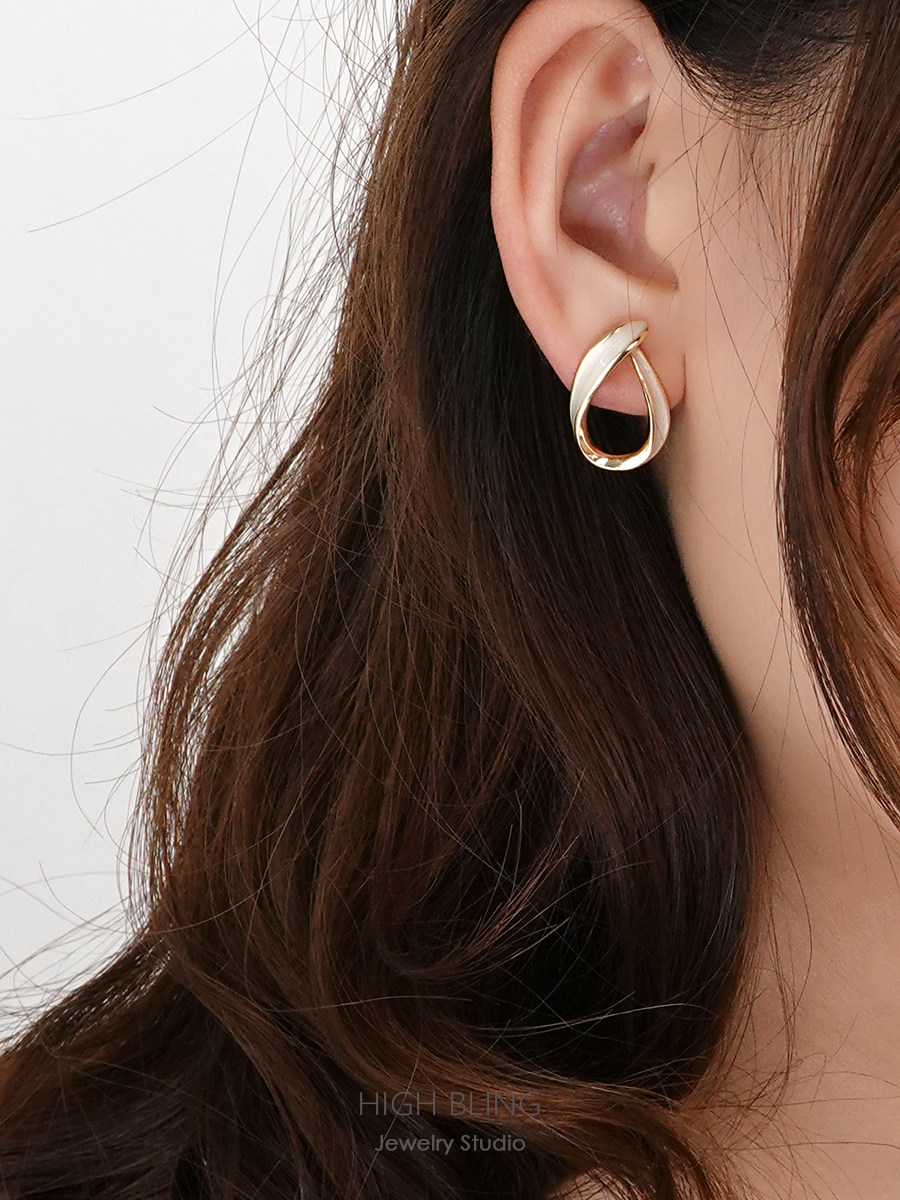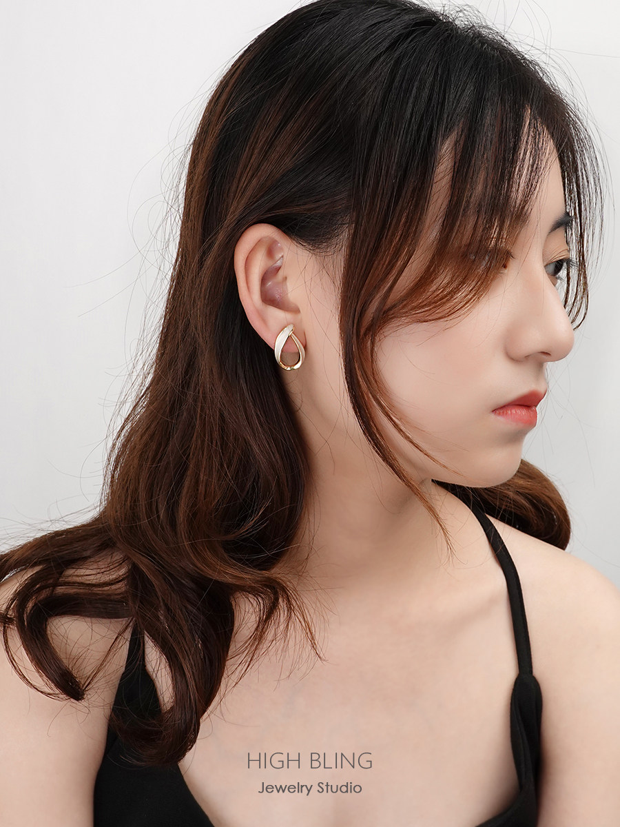 The French style retro temperament elegant silk with tea tie-shaped earrings earring silver needle mosquito coil ear clip without pain and no ear