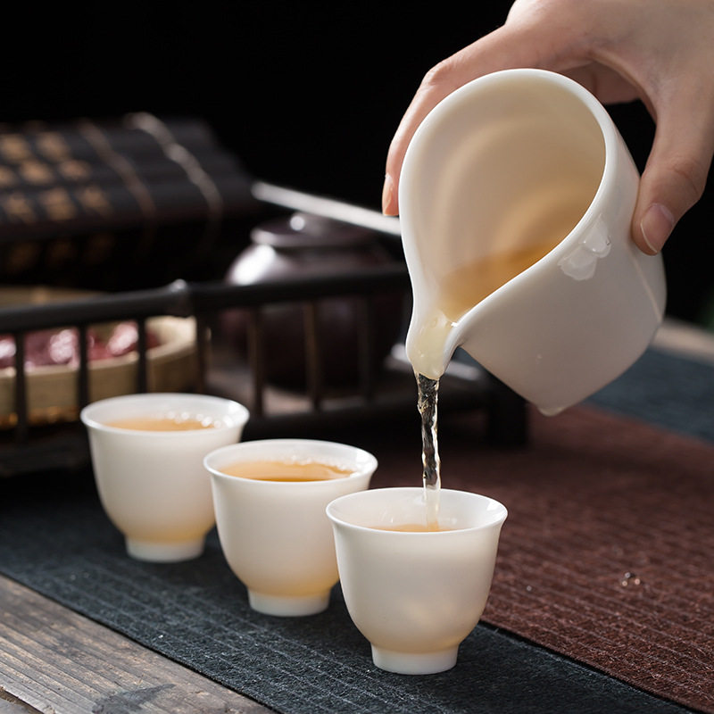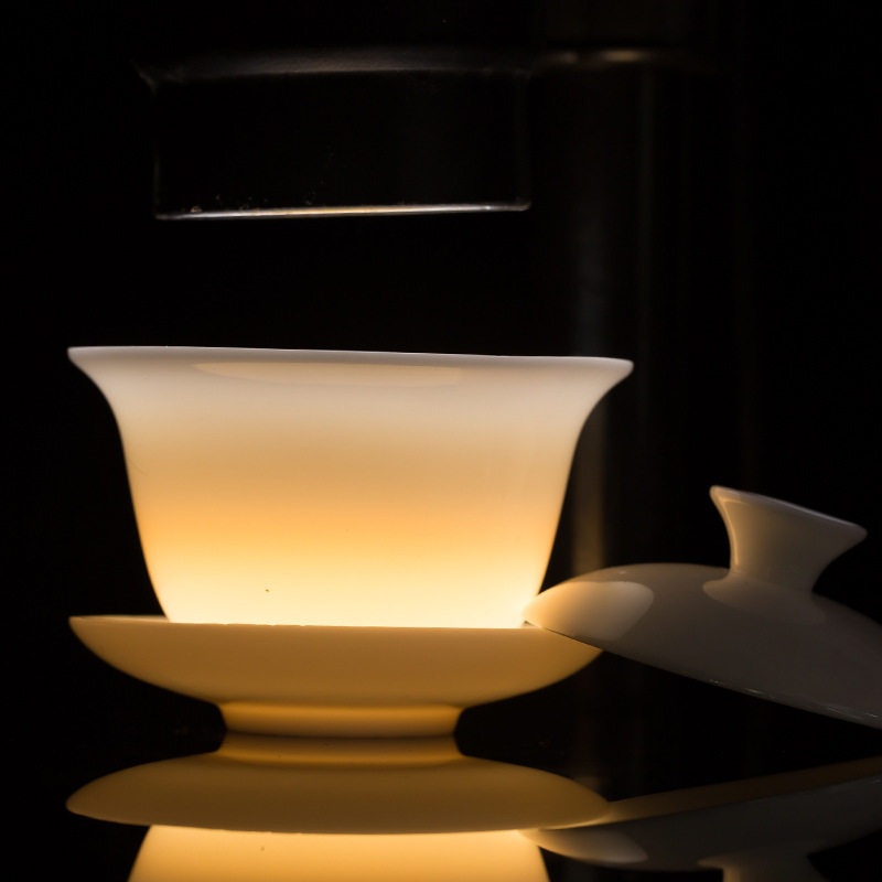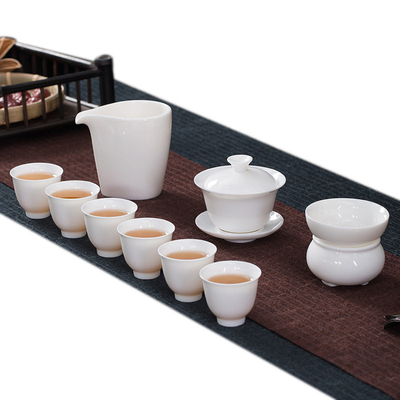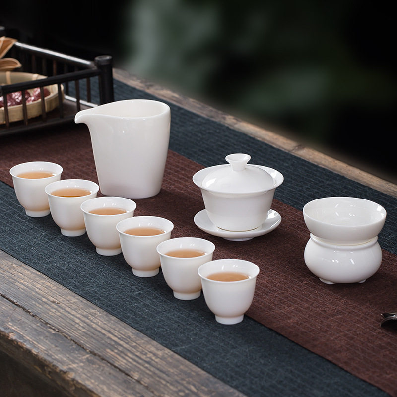 Fanshang Qishe White Porcelain Tea Set Cover Bowl Kung Fu Tea Set Complete Set of High-grade Suet Jade Porcelain Tea Set Customization
