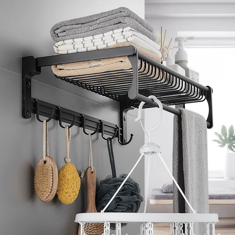 (Black) Mesh Basket Bath Towel Rack Type A 60cm (Punched, No Punching, Dual Use)